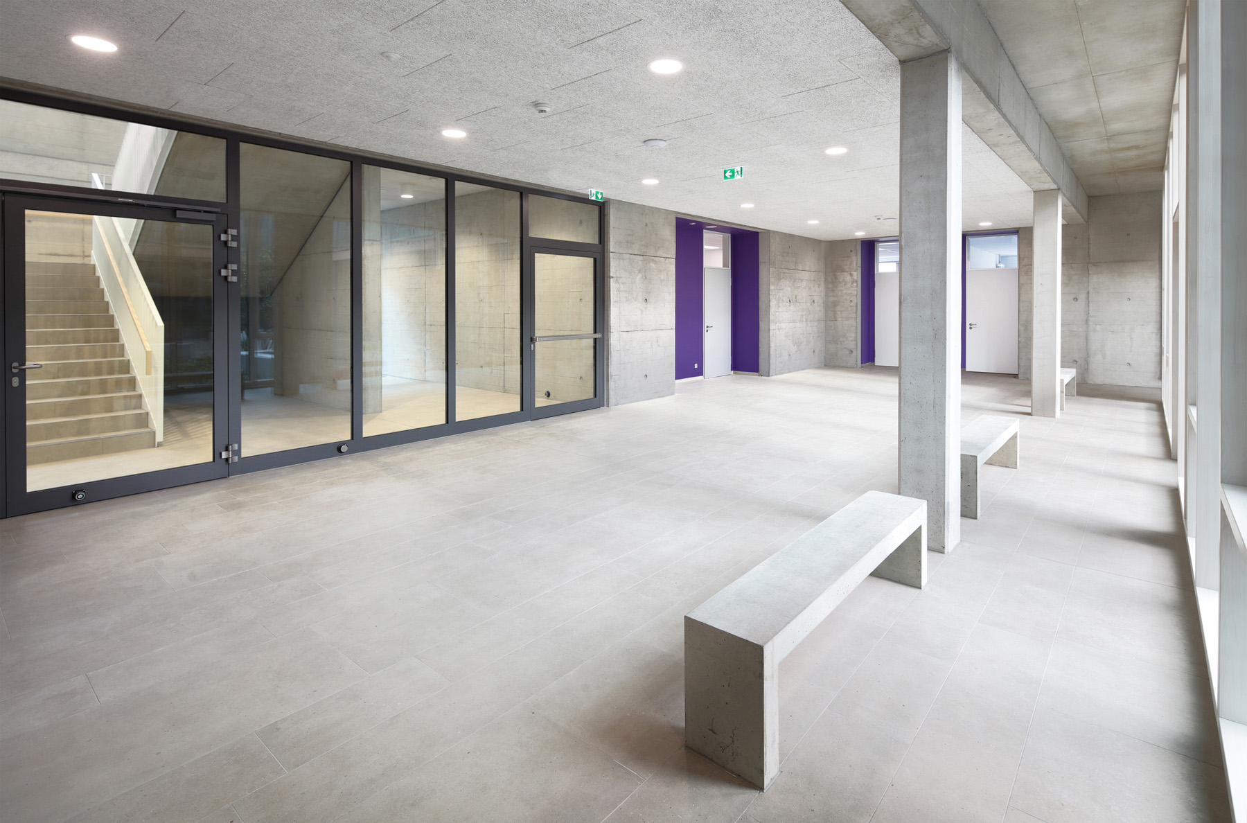 Im Erweiterungsneubau sind zusätzliche Flächen für Klassen-, Hausaufgaben- und Gruppenräume sowie ein Begegnungs- und Freizeitbereich entstanden. Zugleich wurde das dreigeschossige Hauptgebäude von 1978 baulich, haustechnisch und schadstoffbedingt saniert und umgebaut. Das Projekt konnte in zwei Bauabschnitten im laufenden Betrieb realisiert werden.