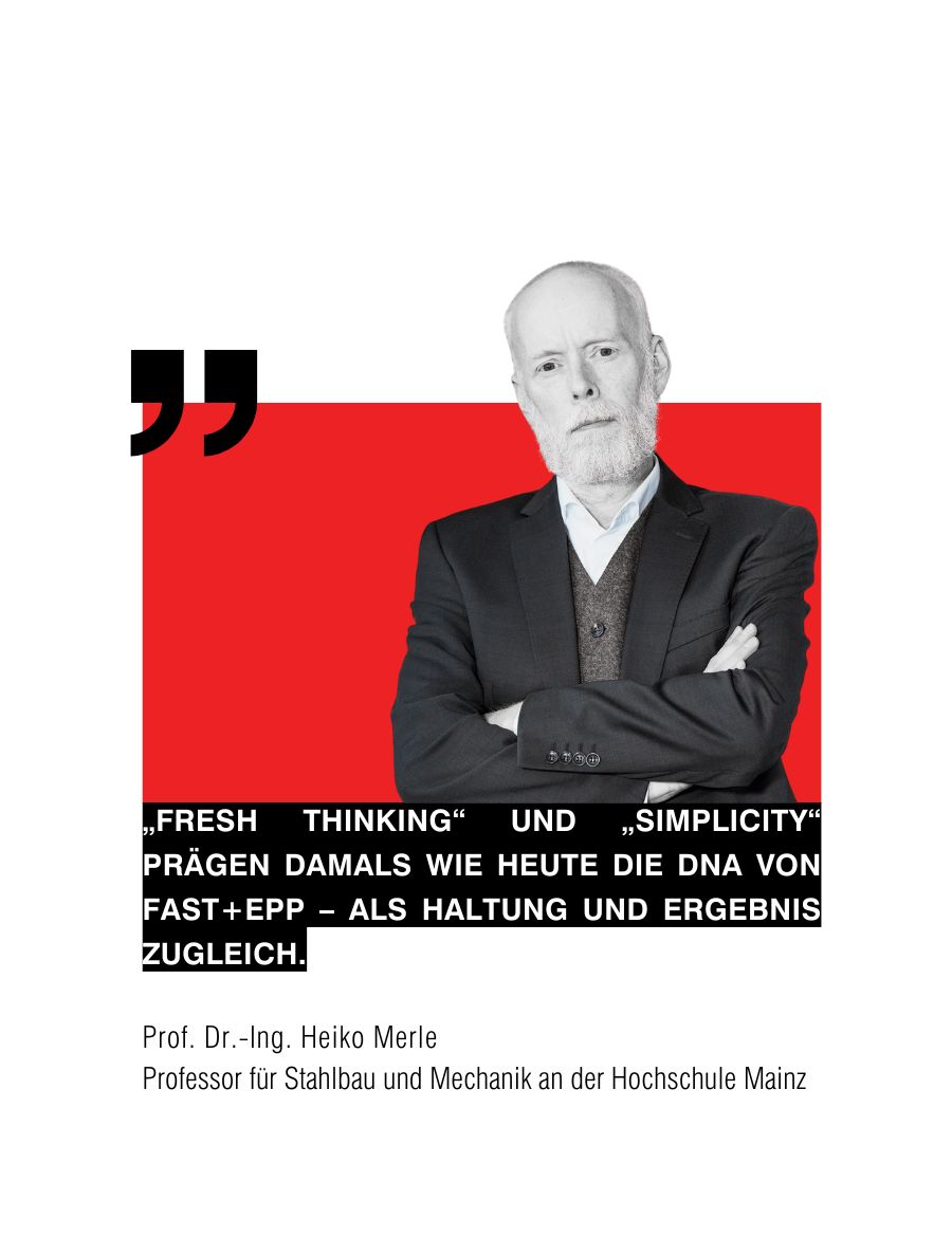 Zwei Charakterzüge prägen die DNA von Fast + Epp für mich ganz besonders: „Fresh Thinking“ und „Simplicity“. Simplicity meint für mich dabei nicht ausschließlich die Einfachheit im Prozess, sondern auch die Einfachheit als Ergebnis – als Ideal, welches aus dem Prozess erwächst. Fresh Thinking steht für ein frisches Denken in der Zusammenarbeit mit Projektpartnern. Es bedeutet, sich auf die Denk- und Arbeitsweisen anderer Disziplinen einzulassen. Es bedeutet, den Willen zu haben, über den Tellerrand zu schauen. Es bedeutet „das Neue und Unbekannte“ als Chance, als Gewinn zu begreifen. Diese Haltung haben wir zusammen bei Fast + Epp geprägt – heute gebe ich sie an der Hochschule Mainz gerne an meine Studierenden weiter.