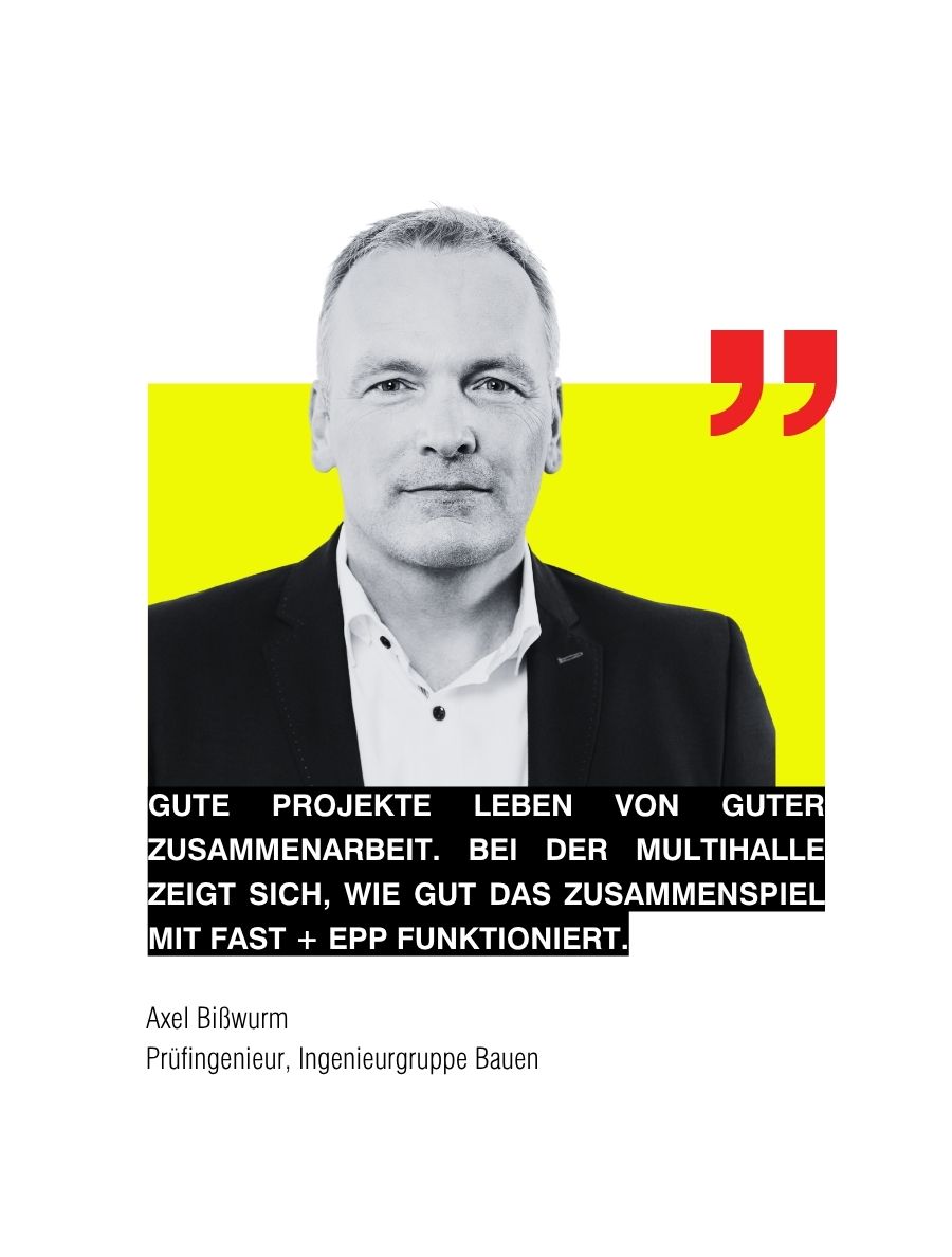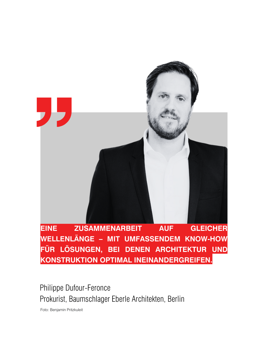 Es gibt Momente im Leben, da weiß man noch nicht, was passiert, aber man spürt, es ist etwas Besonderes, was lange Bestand haben wird. So habe ich den Moment empfunden, als Jochen, Paul und ich in Hamburg im Mai 2014 zum ersten Mal zusammengekommen sind. Im Zuge unserer ersten Besprechung zu unserem gemeinsamen Projekt „Neubau Berufliche Schule City-Nord“ habe ich unmittelbar den Geist gespürt, sich nicht mit dem Machbaren zufriedenzugeben, sondern stets den Anspruch zu haben, das Charakteristische des Entwurfes herauszuarbeiten und eine innovative Tragwerkslösung davon abzuleiten, sodass Tragwerk und Architektur eine Symbiose eingehen.