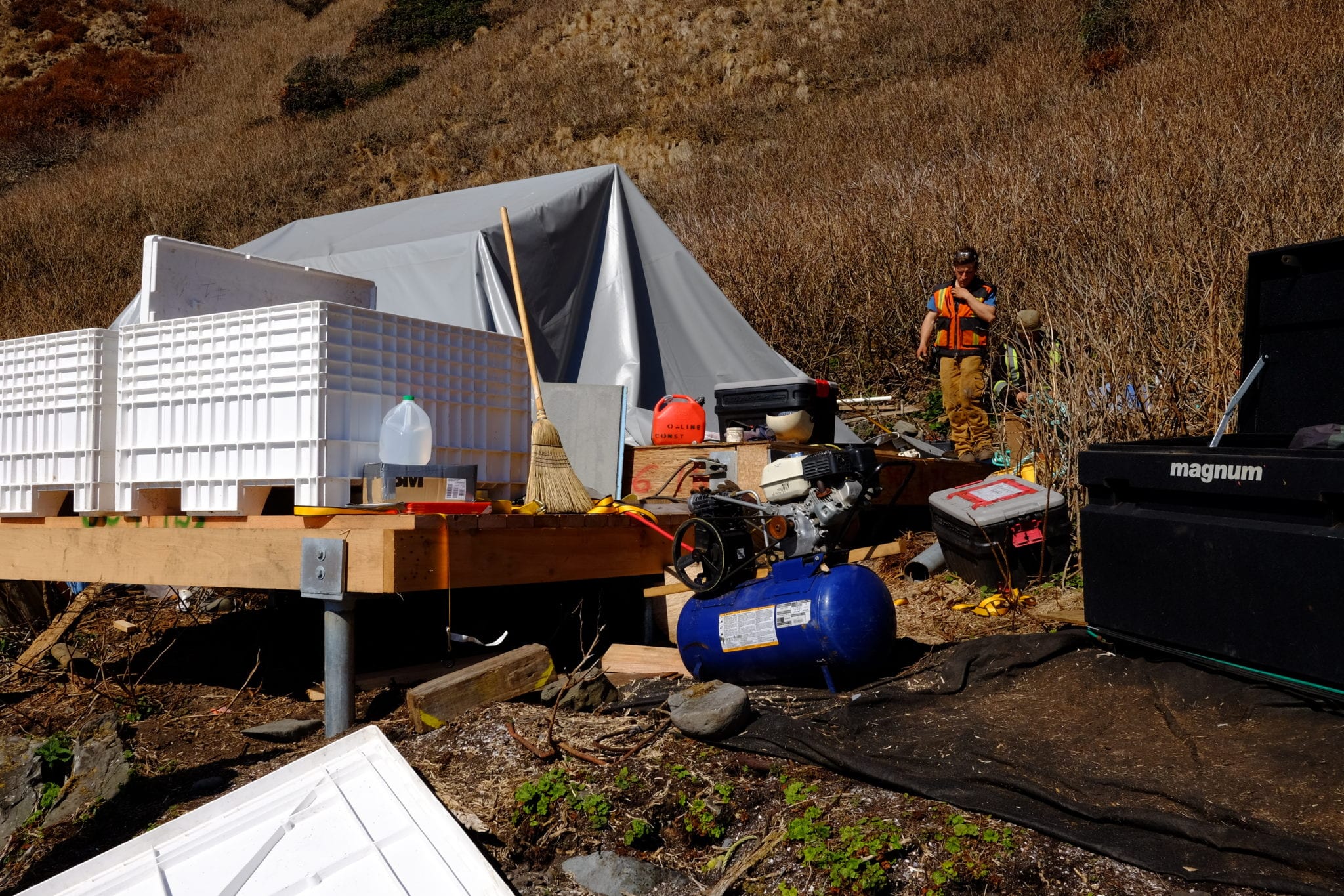 The research team is studying how a changing climate and ocean is affecting the birds’ ability to find food, reproduce and survive. Only a few people are granted permits to access Triangle Island every year, and the current research shelter is a 12’ x 20’ tin-clad cabin with a leaky roof.
