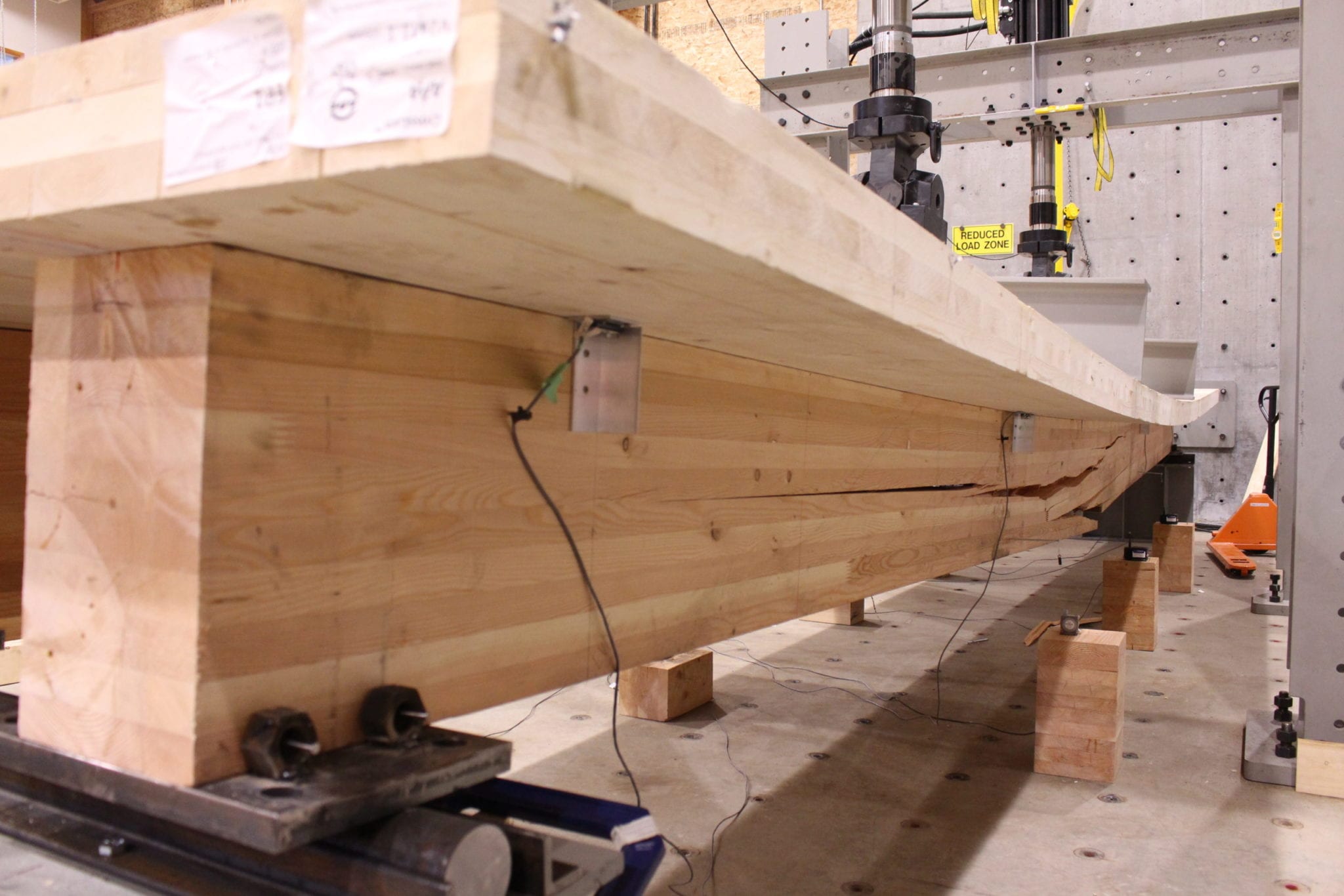 - Specimen DT-1: Four-point bending test on CLT-glulam composite floor.