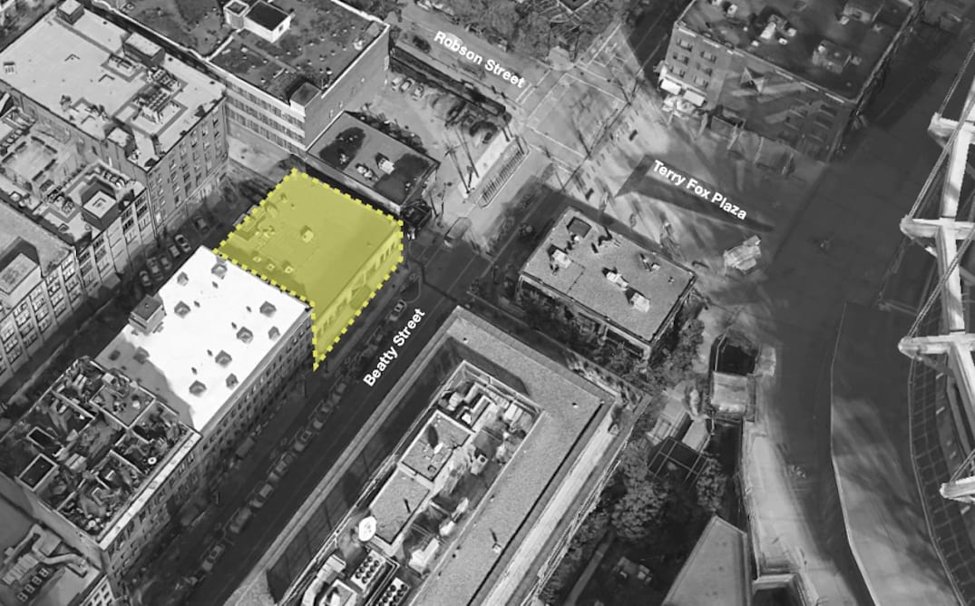 The recently submitted development application for 837 Beatty Street heritage building located across from the Terry Fox Plaza in Vancouver, BC proposes the century old warehouse structure be renewed as a mixed-use building.