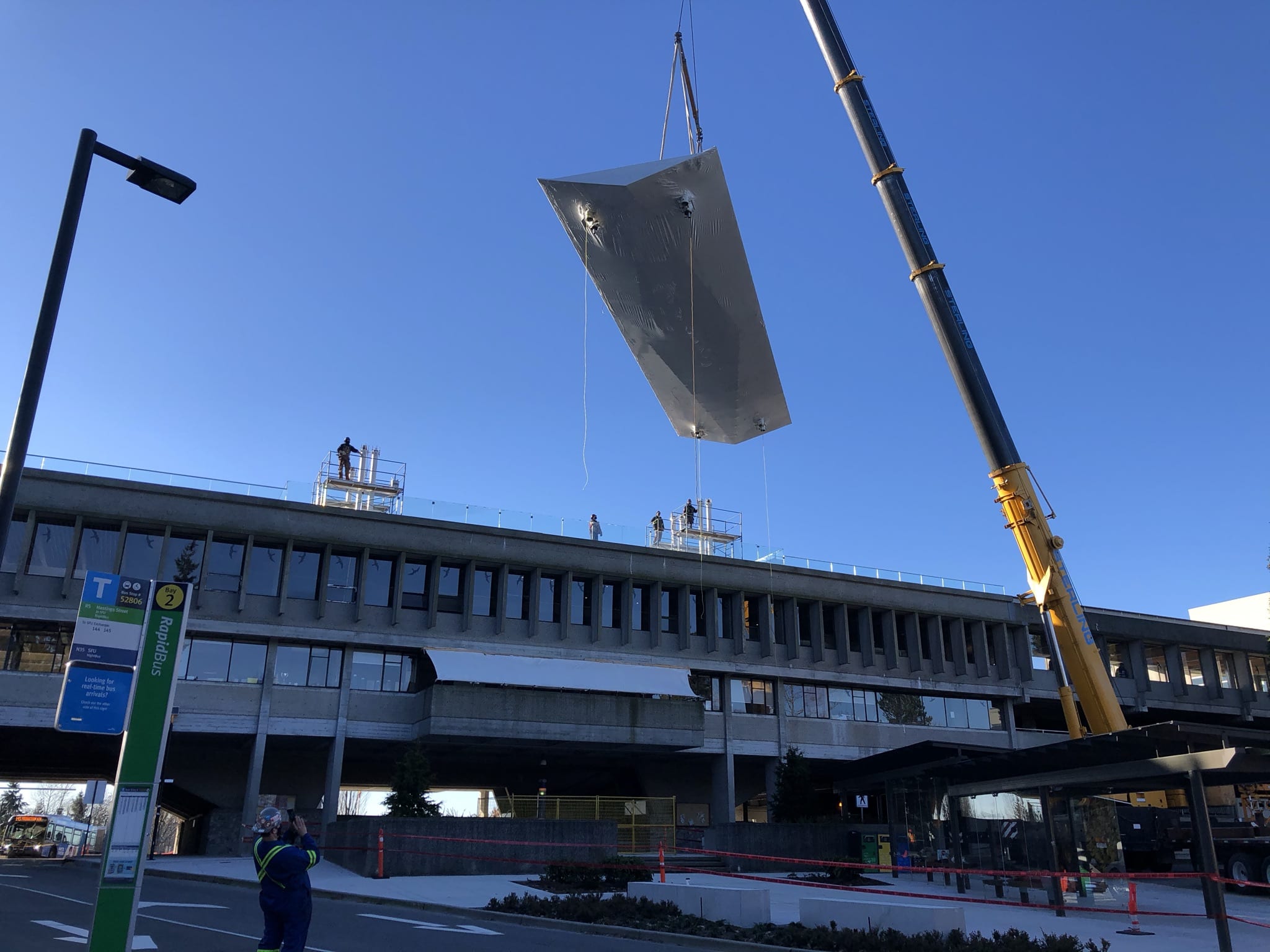New roof craned into SFU plaza