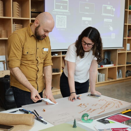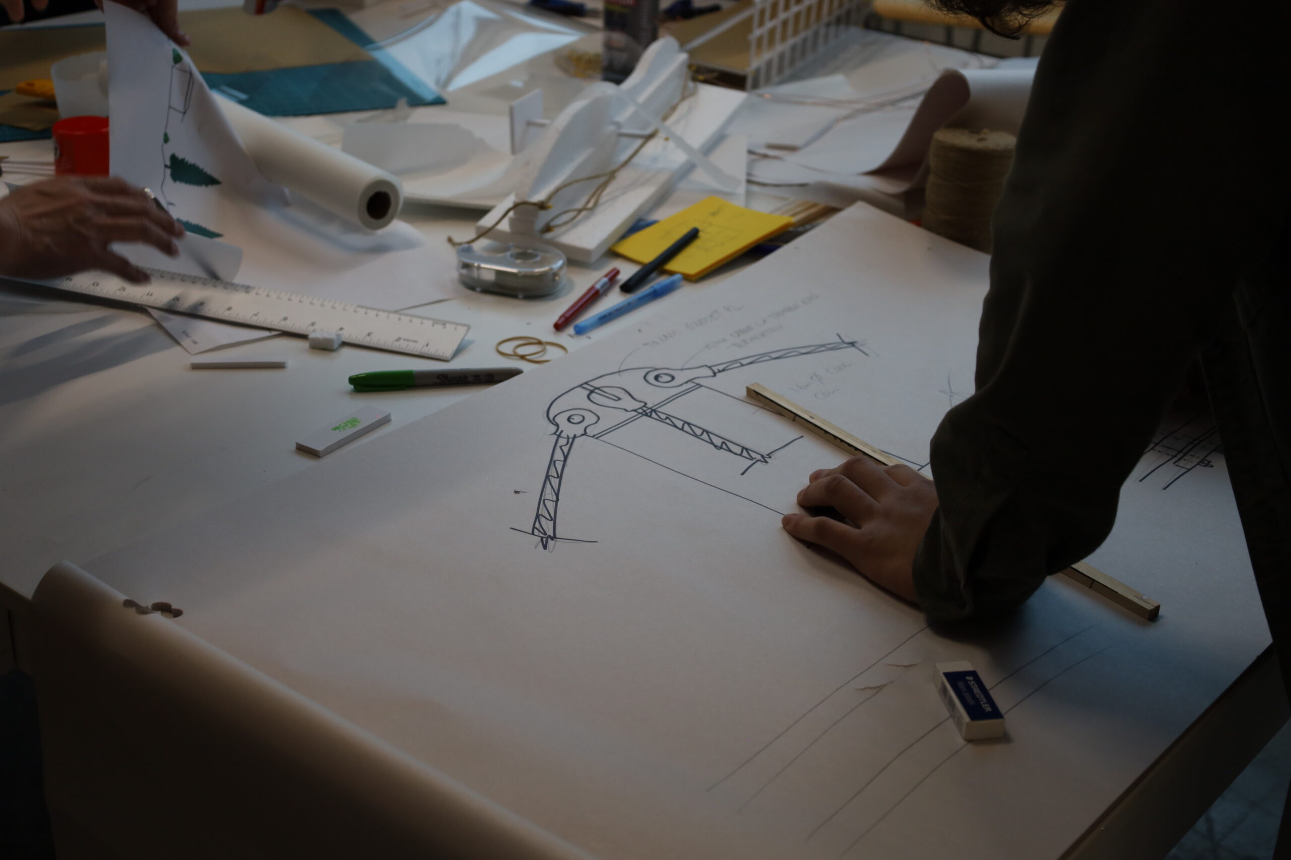 Throughout the afternoon, teams developed concepts, built models, and accounted for cost and carbon footprint using a relative scale metric. The advanced and bio-based materials were represented by alternative modeling materials, allowing participants to explore form, structure, and material expression in a hands-on, experimental way while testing the practical and aesthetic possibilities of their designs.
