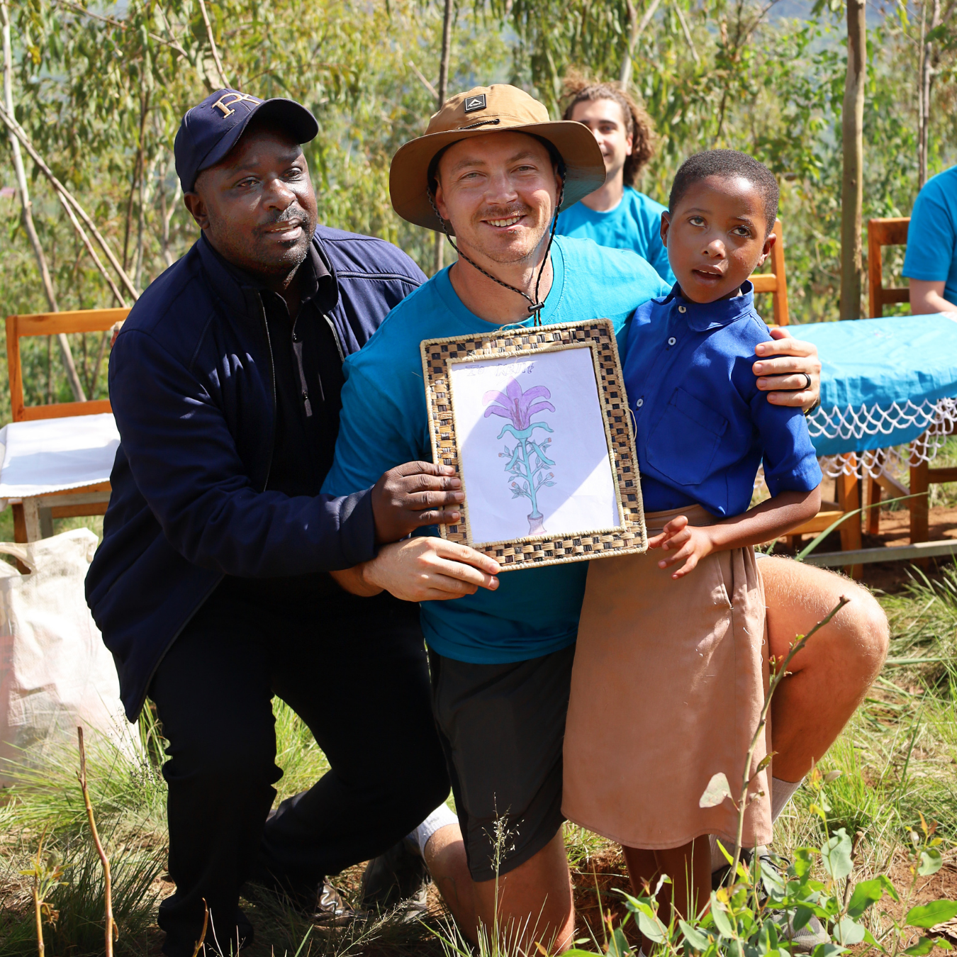 Each day followed a steady rhythm. The team rose at 6:00 a.m. for breakfast, drove an hour to the site—14 kilometres away—and then hiked down to the river crossing. Once on site, the group reviewed the day’s construction plans and warmed up with stretching, singing, and dancing led by community members. Work continued from 9:00 a.m. to 5:00 p.m., with breaks for tea and lunch along the way.