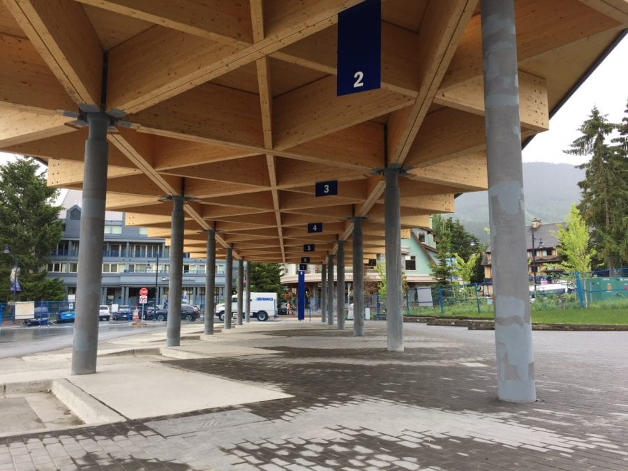 Located close to the heart of Whistler Village behind the Village Square, the Resort Municipality of Whistler sought an iconic, landmark bus shelter canopy that would welcome travelers into the community and act as its main transportation hub.